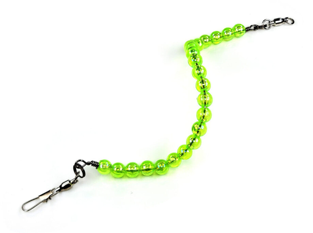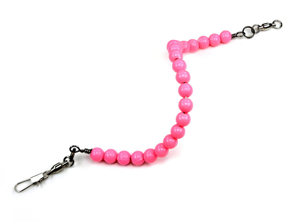 The Spiral Z is built around a stainless-steel wire with colored beads in a variety of colors for attraction and a ball-bearing line swivel to eliminate line twist. Unlike a traditional spinner where the blade rotates on a clevis, with the Spiral Z, the entire package rotates, creating an undulating lifelike meal for gamefish of every species. Anglers can add their favorite hook to the end, or it can also be used as an attractor by rigging it any distance in front of a favorite lure.