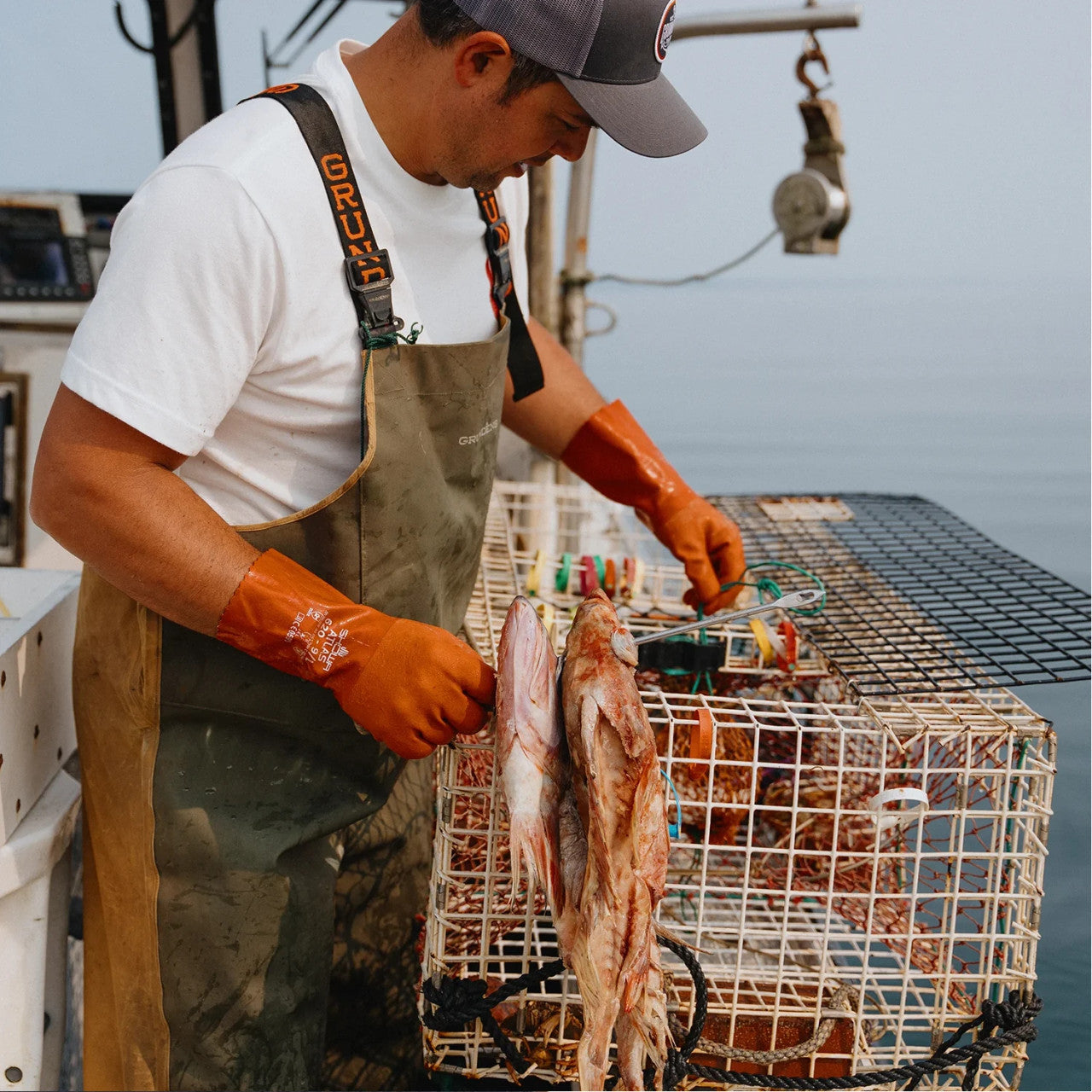 Built rugged, tough, and focused on the task at hand, the Sternman Armored Bib gets its namesake from the hard-working lobstermen of the Northeast. The 100% waterproof construction features body-mapped TPU “armour” that maximizes durability in high-abrasion zones when pulling traps, harvesting catch, and working your a$$ off on deck. The thoughtful breathable shell gives back to Mother Ocean by using a recycled a 4-layer nylon made from fish nets and oyster farming. Mobility and functionality were prioritized with a gusseted crotch to remove working tension and enhance maneuverability, and interior knee pad pockets are available when you need to beef up lower body protection. Complete with internal secure storage for your personal items, the Sternman Armored Bib is equipment for the commercial fisherman.