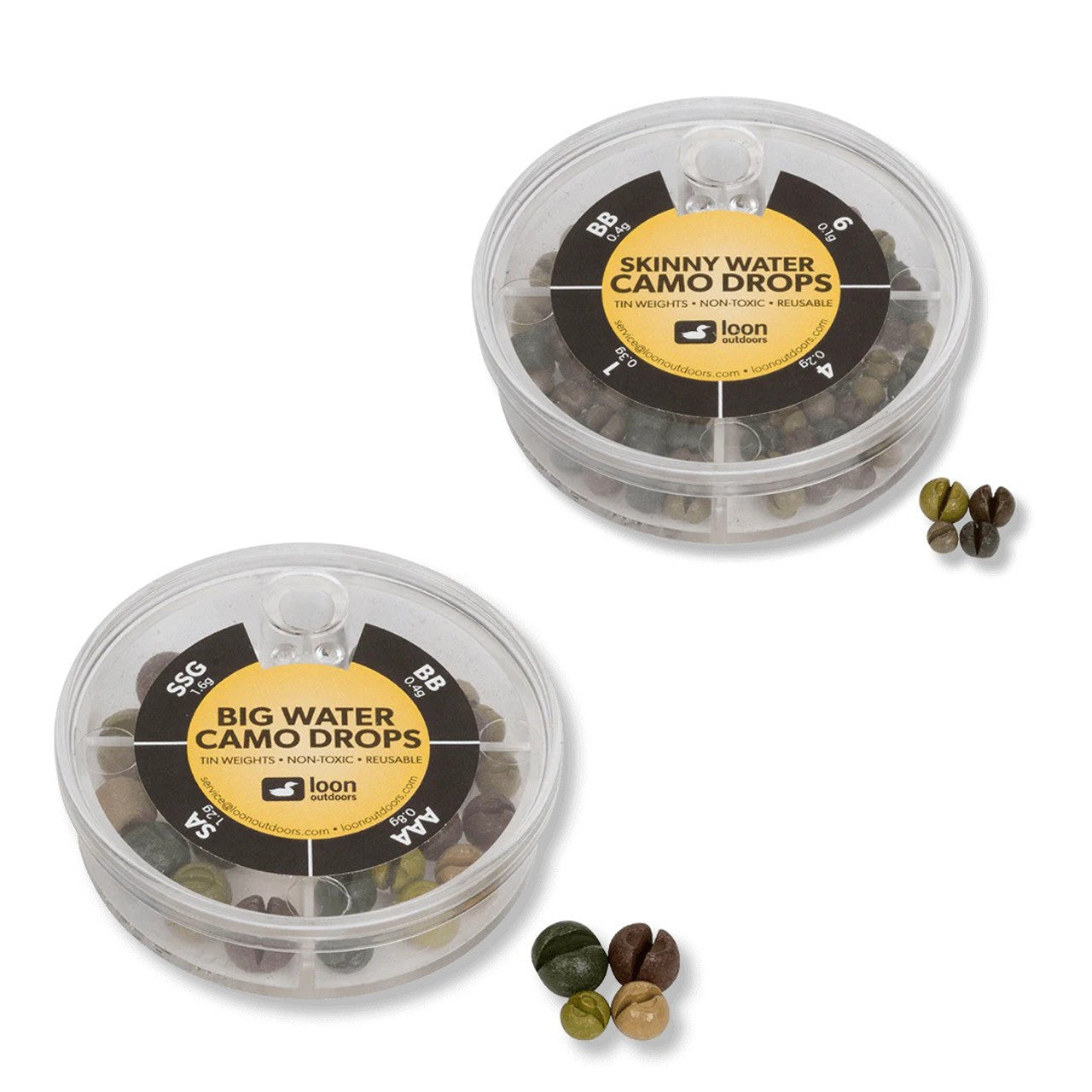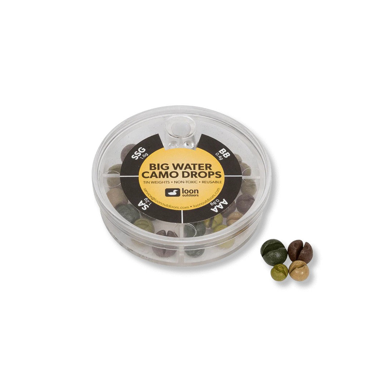 Home / Fly Fishing / Floatants, Indicators and Sinkets / LOON CAMO TIN DROPS 4-DIVISION DISPENSER