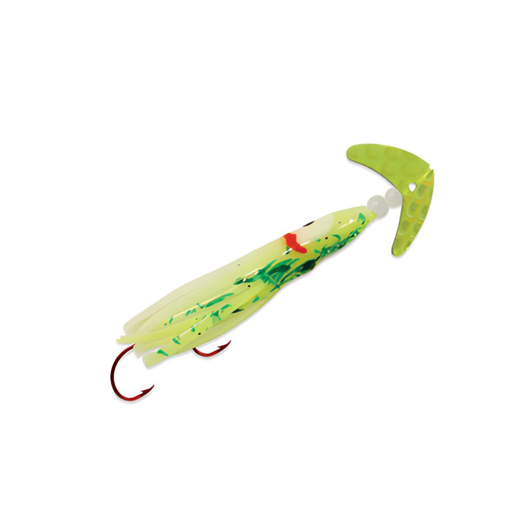 The Cha Cha 1.5 Kokanee is designed for the small mouths of kokanee. With its two-hook, no-gap squidder setup, it works great early or late in the season for kokanee and trout.