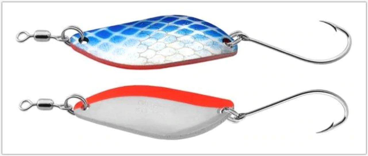 Construsted of heavy gauge brass, for casting accuracy and control, the Gibbs Koho is ideal for rivers, streams and lakes. Even in fast, deep water, the Koho gets down to where the fish are. Designed with an enticing frantic motion at any retrieval speed, it's simply impossible for fish to resist!