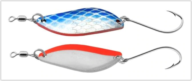 Construsted of heavy gauge brass, for casting accuracy and control, the Gibbs Koho is ideal for rivers, streams and lakes. Even in fast, deep water, the Koho gets down to where the fish are. Designed with an enticing frantic motion at any retrieval speed, it's simply impossible for fish to resist!
