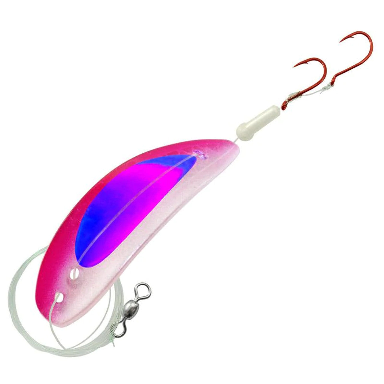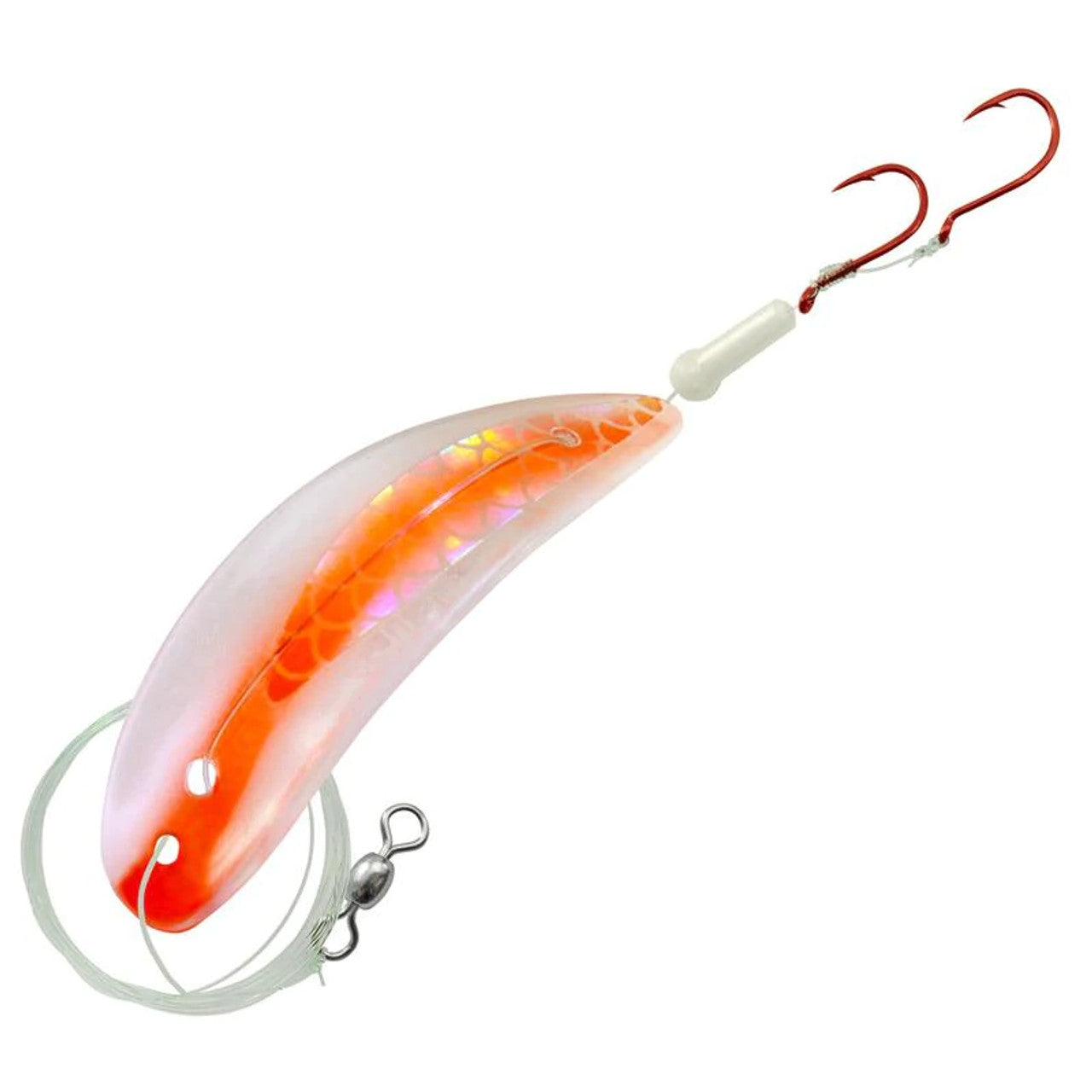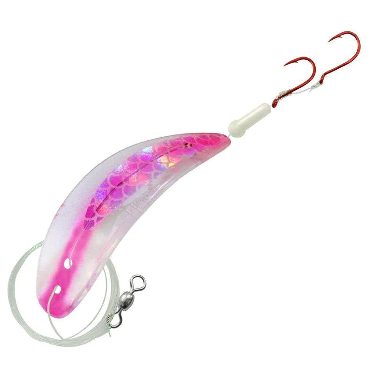 The Gibbs-Delta TKO is a plastic lure with an erratic lifelike action that will entice even the pickiest fish. It comes rigged with a 10lb test line, a glow stopper bead and two sharp red hooks.