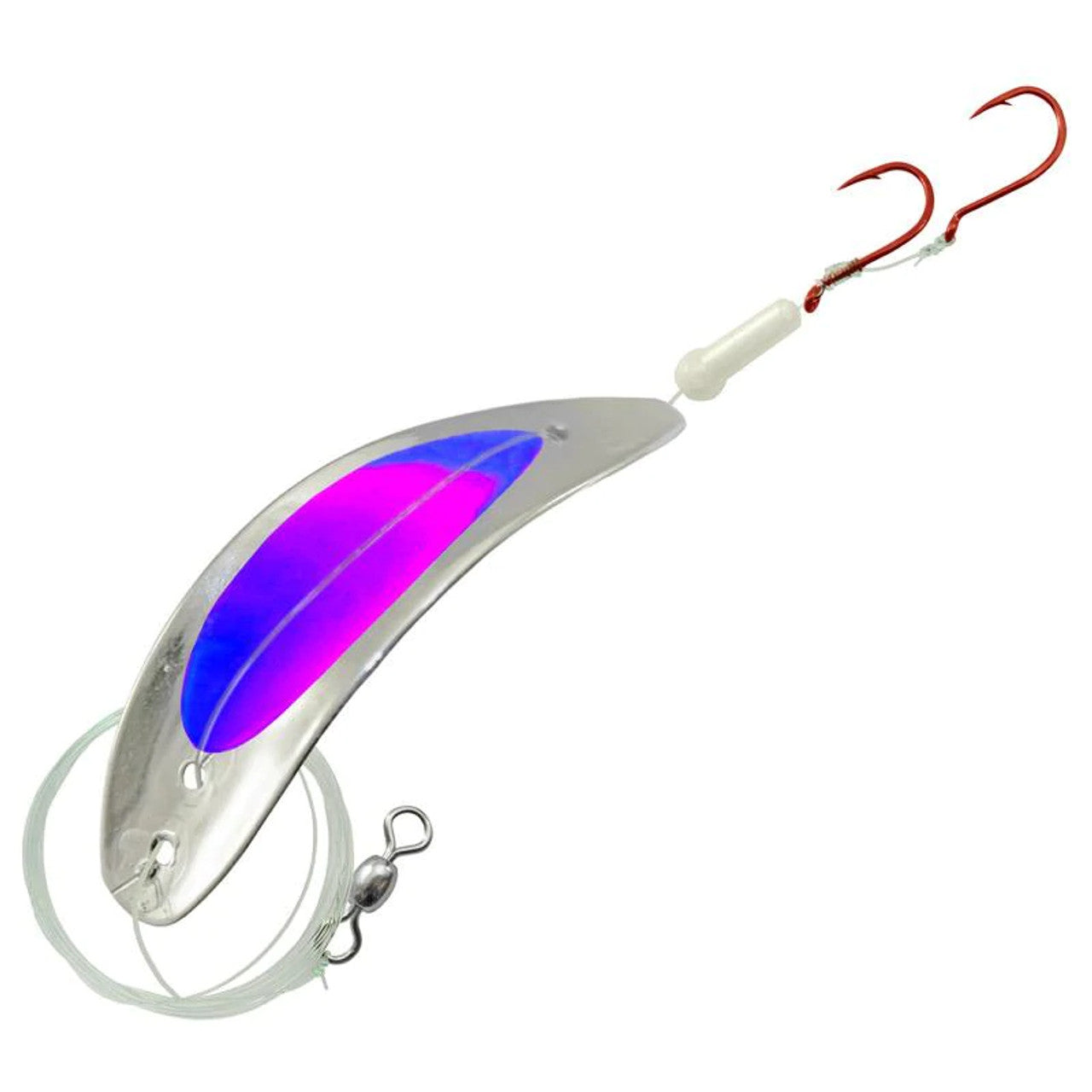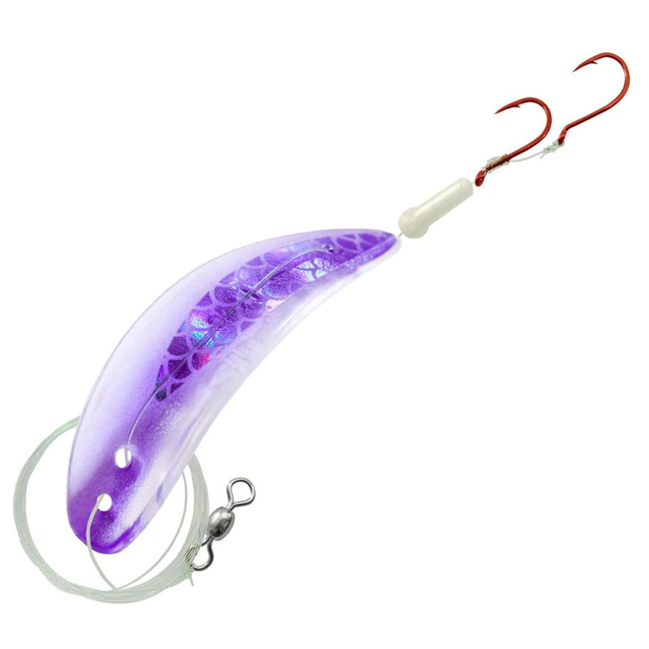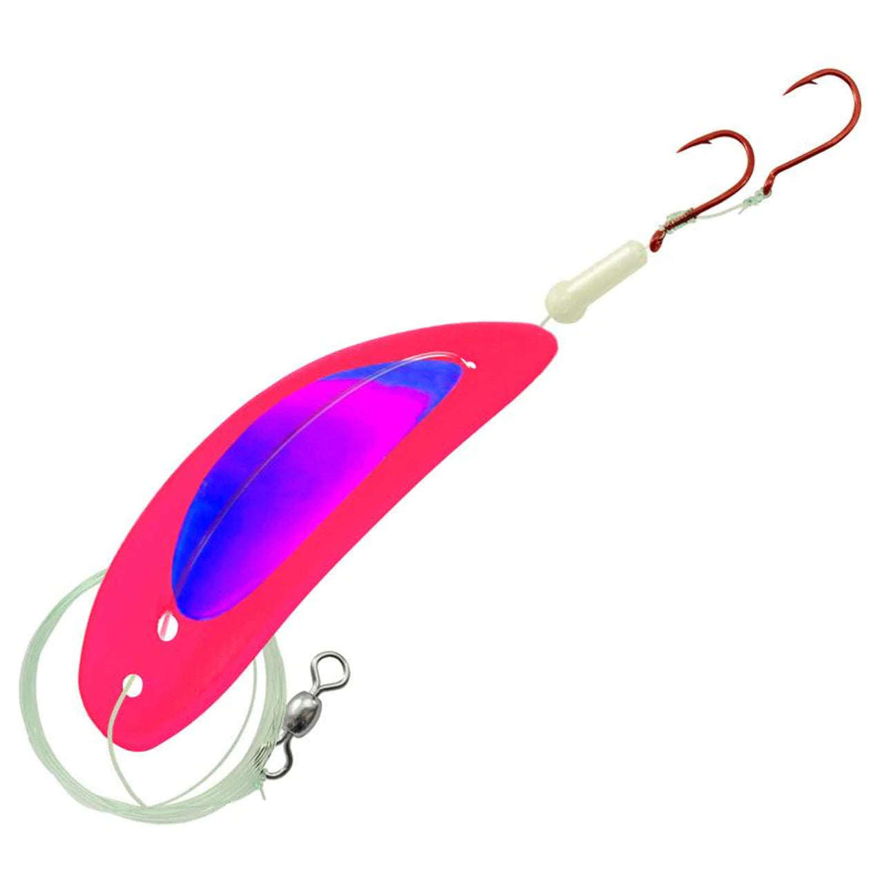 The Gibbs-Delta TKO is a plastic lure with an erratic lifelike action that will entice even the pickiest fish. It comes rigged with a 10lb test line, a glow stopper bead and two sharp red hooks.