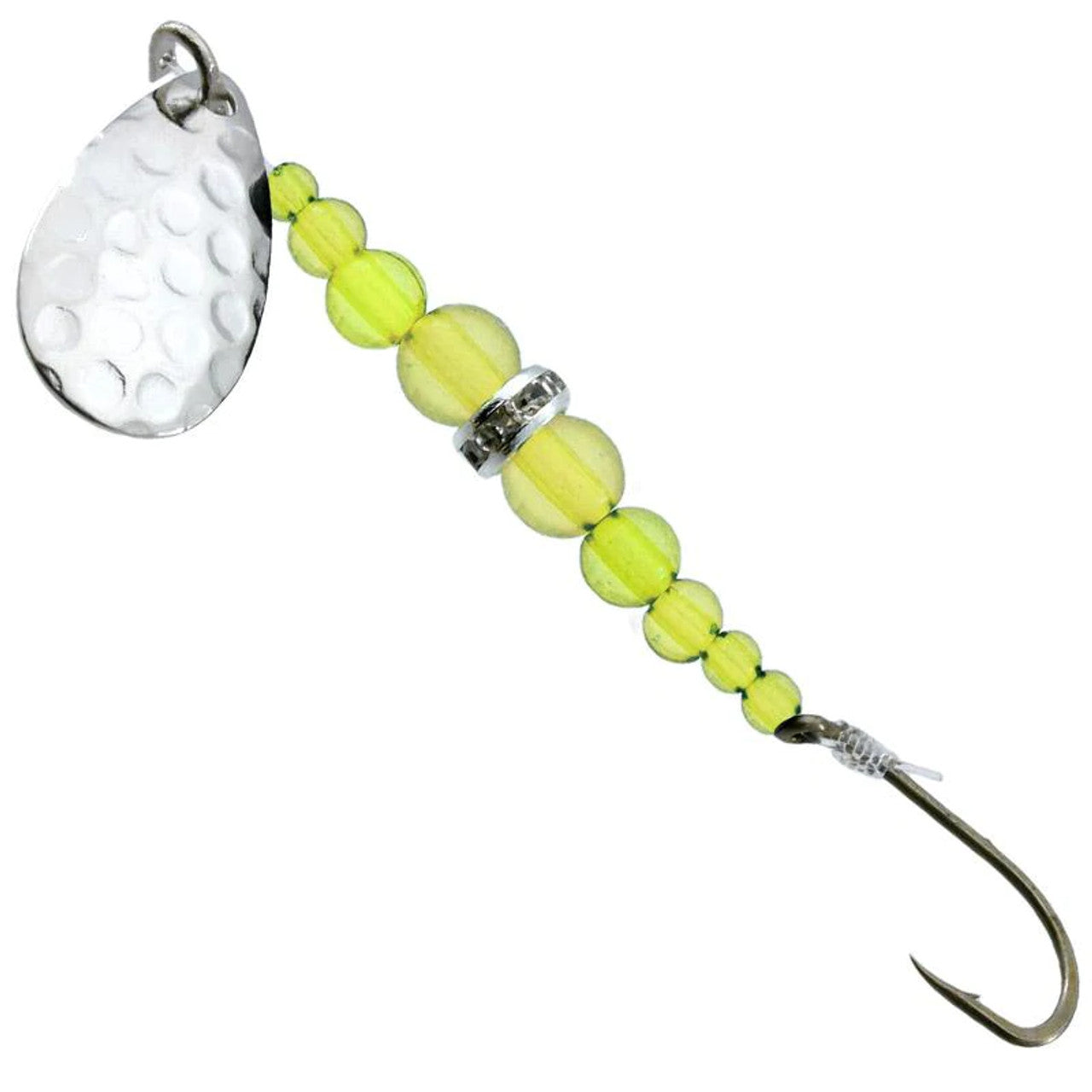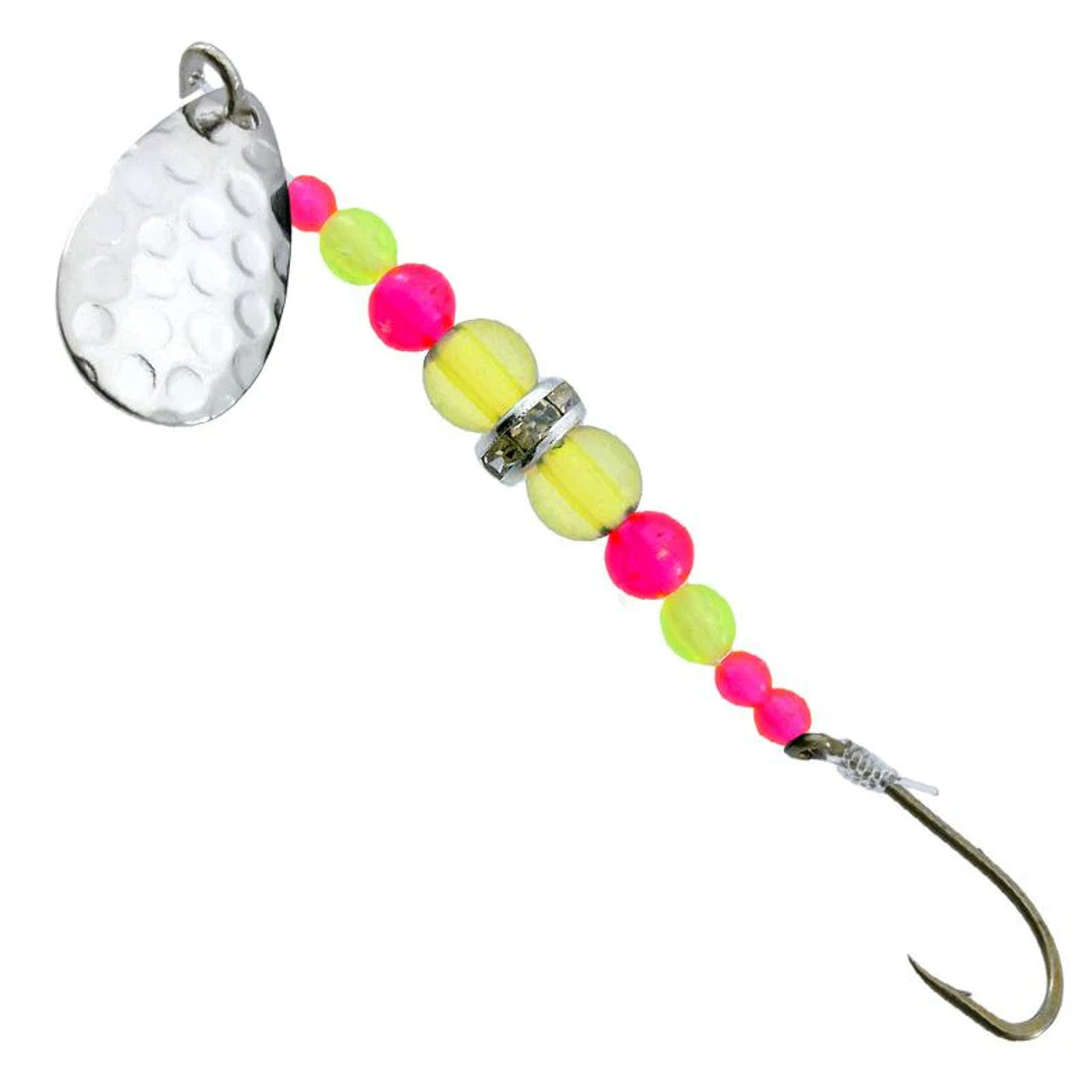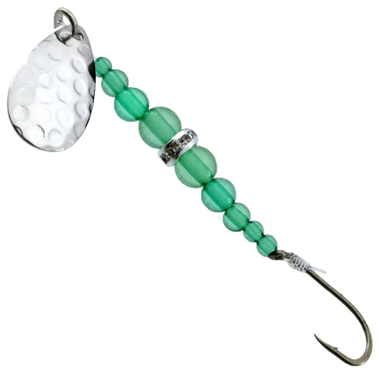The Gibbs Wedding Band is a multipurpose little spinner that is a must have for Trout, Kokanee, Bass, Whitefish, Walleye and other gamefish. An absolutely irresistible sparkle reflects from the bowl of our highly polished Indiana blades as they revolve around a genuine European rhinestone rondelle.