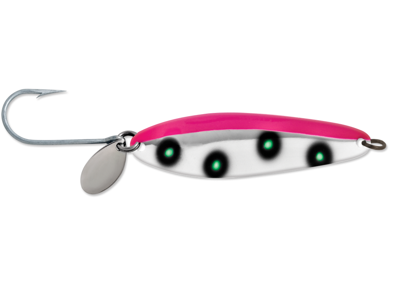 It only took a short period of time for the Coyote Spoon to rise to the top of ocean salmon fisheries off of Oregon, Washington and Western Canada. The spoons thin material creates a very active swimming action that salmon can't resist. Sized from 3 to 4-1/2 inches in length, sizes should be chosen to match the baitfish on which salmon are feeding. Smaller sizes when candlefish and anchovies are most prevalent, larger in late season when herring become the food of choice. The Coyote Spoon performs exceptionally well behind dodgers and flashers alike.