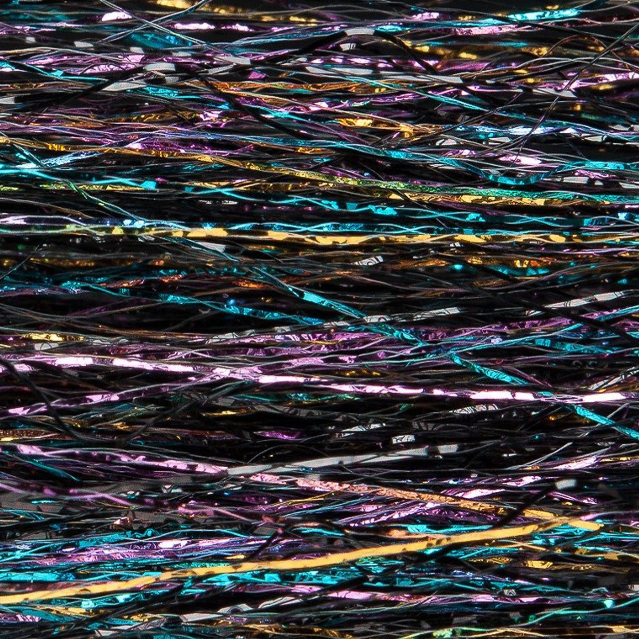 Polar Flash is a synthetic material made by wrapping Flashabou strands with micro nylon filaments.