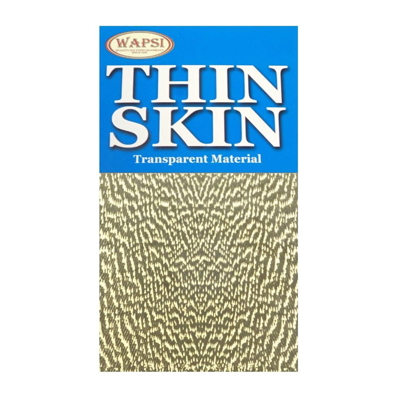 Wapsi Thin Skin is a stretchable thin plastic film great for use on a wide variety of fly patterns. Thin Skin is excellent for wing cases on nymphs, backs on scuds, sow bugs, shells on crayfish, and shrimp patterns. This material can be used on flies down to and past size 18. Wapsi Thin Skin comes on a backing making it easy to cut. The solid colors feature opaque coloring with a matte finish on one side and a shiny finish on the other. The gator colors are translucent with a scale-like pattern. The mottled oak colors are translucent with mottling resembling that of natural turkey wing feathers. The mottled bustard colors feature a finer mottling pattern than that of the mottled oak colors.